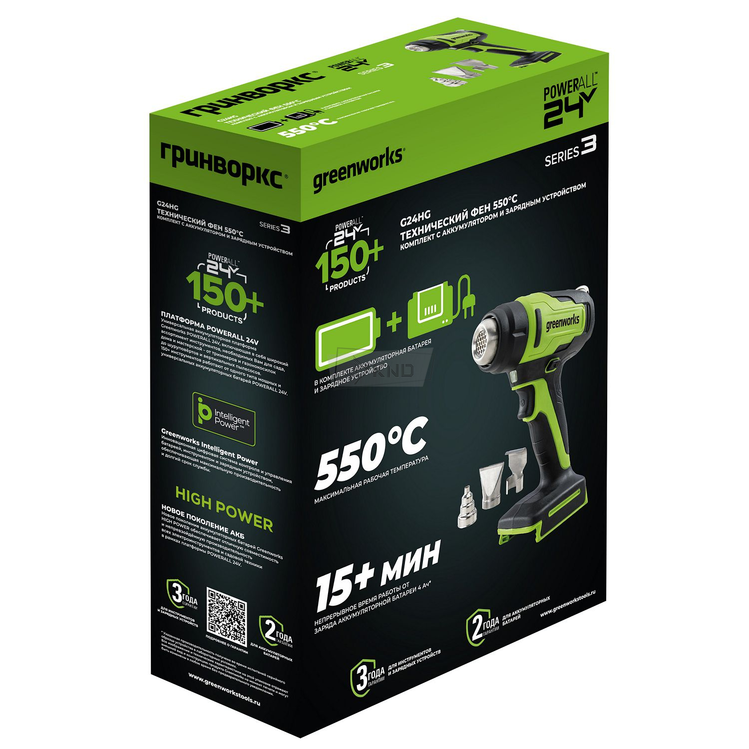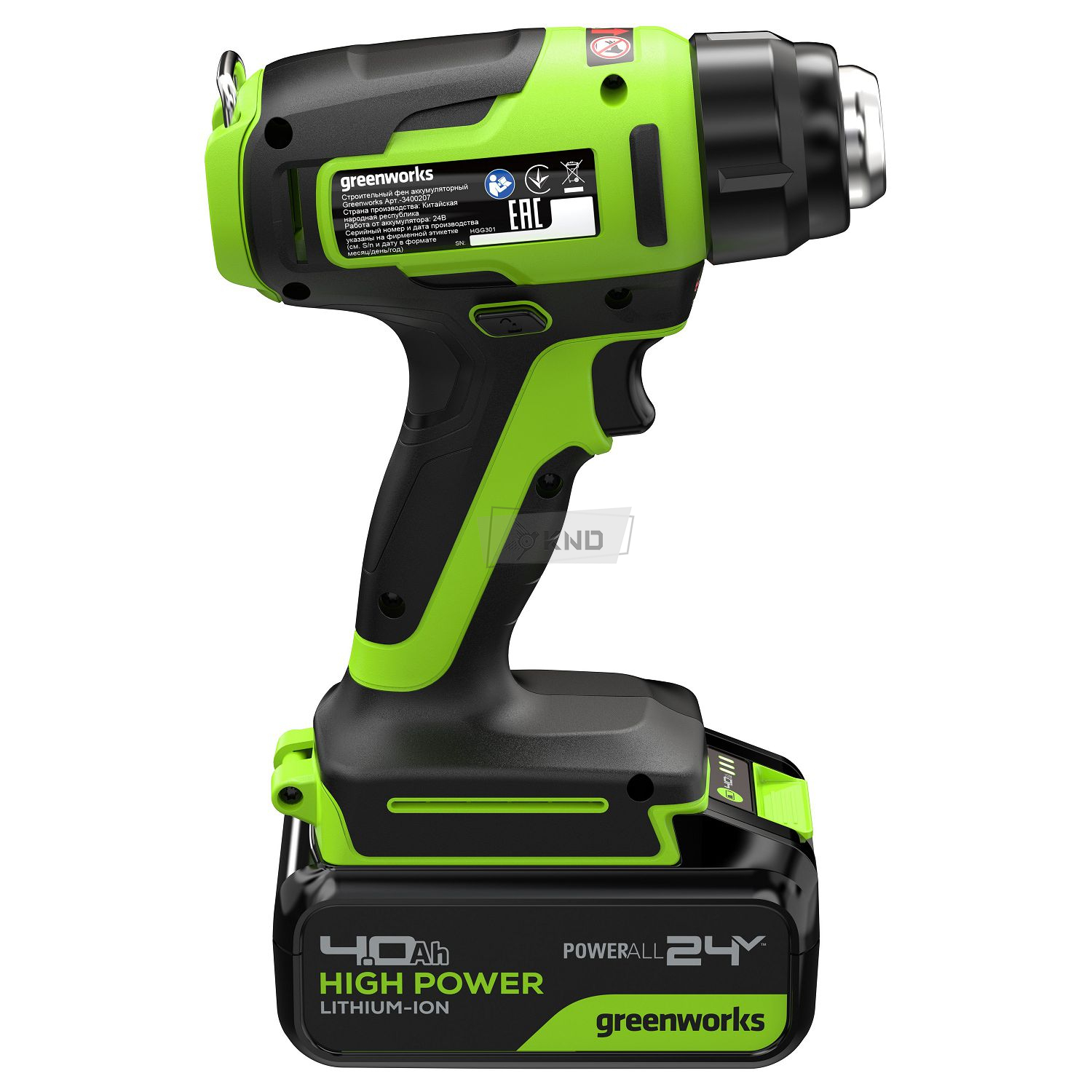 Фен строительный аккумуляторный Greenworks G24HG с АКБ 4 Ач и ЗУ