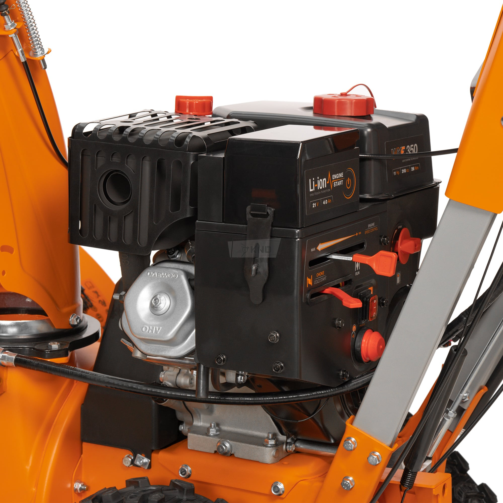 Уверенный запуск при отрицательных температурах. Повышенный моторный ресурс. Увеличенный глушитель и сниженный уровень шума. Вместительный топливный бак на 5,2 литра.