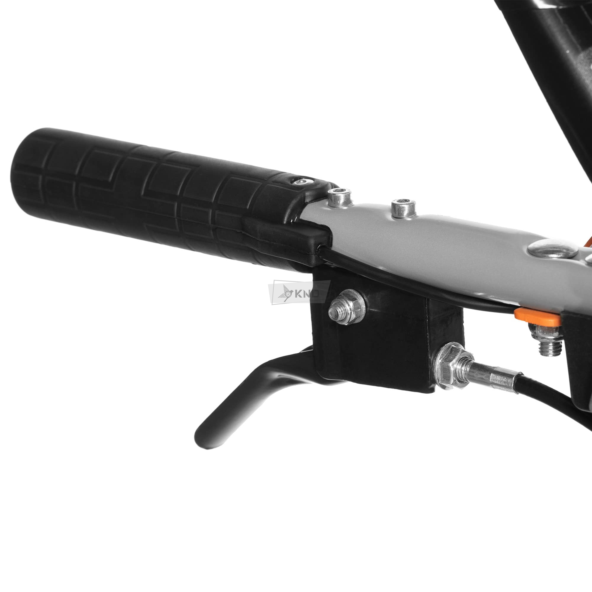 Нажатие 2-х рукояток приводит к их взаимной блокировке. Это позволяет управлять снегоуборщиком даже одной рукой, в том числе изменять направление выброса снега без остановки работы.