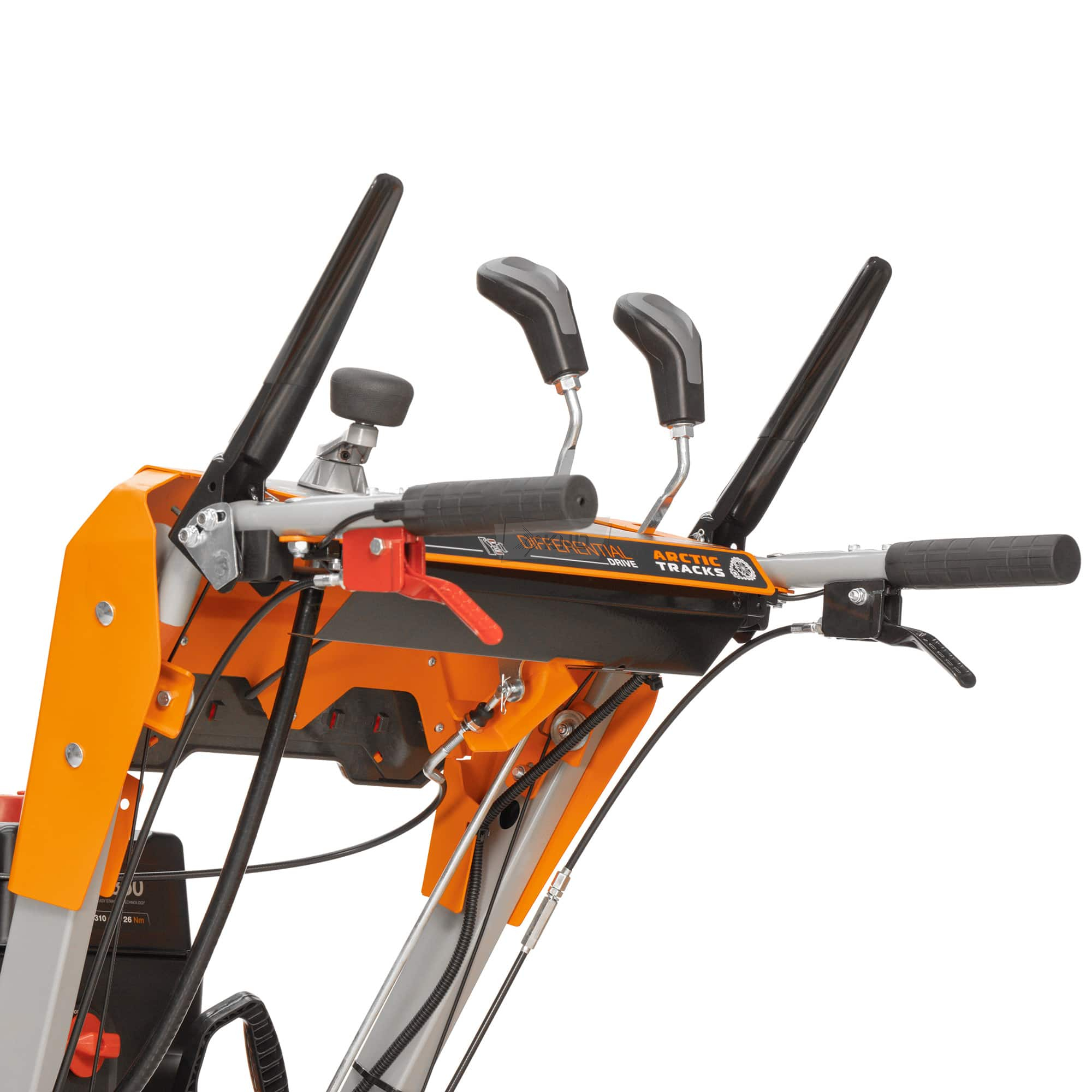 Автоматический дифференциал позволяет без усилий маневрировать снегоуборщиком на любых поверхностях, перебрасывая крутящий момент между колесами в зависимости от условий работы. При необходимости дифференциал можно разблокировать с помощью специального рычага.